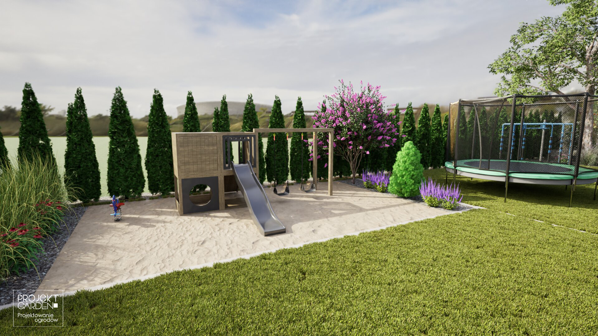 Plac zabaw – bezpieczna strefa dziecięca na piasku.