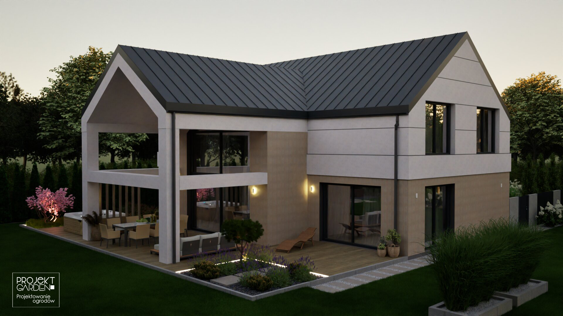 Projekt elewacji, ogrodu i ogrodzenia – kompleksowe zagospodarowanie działki pod Warszawą
